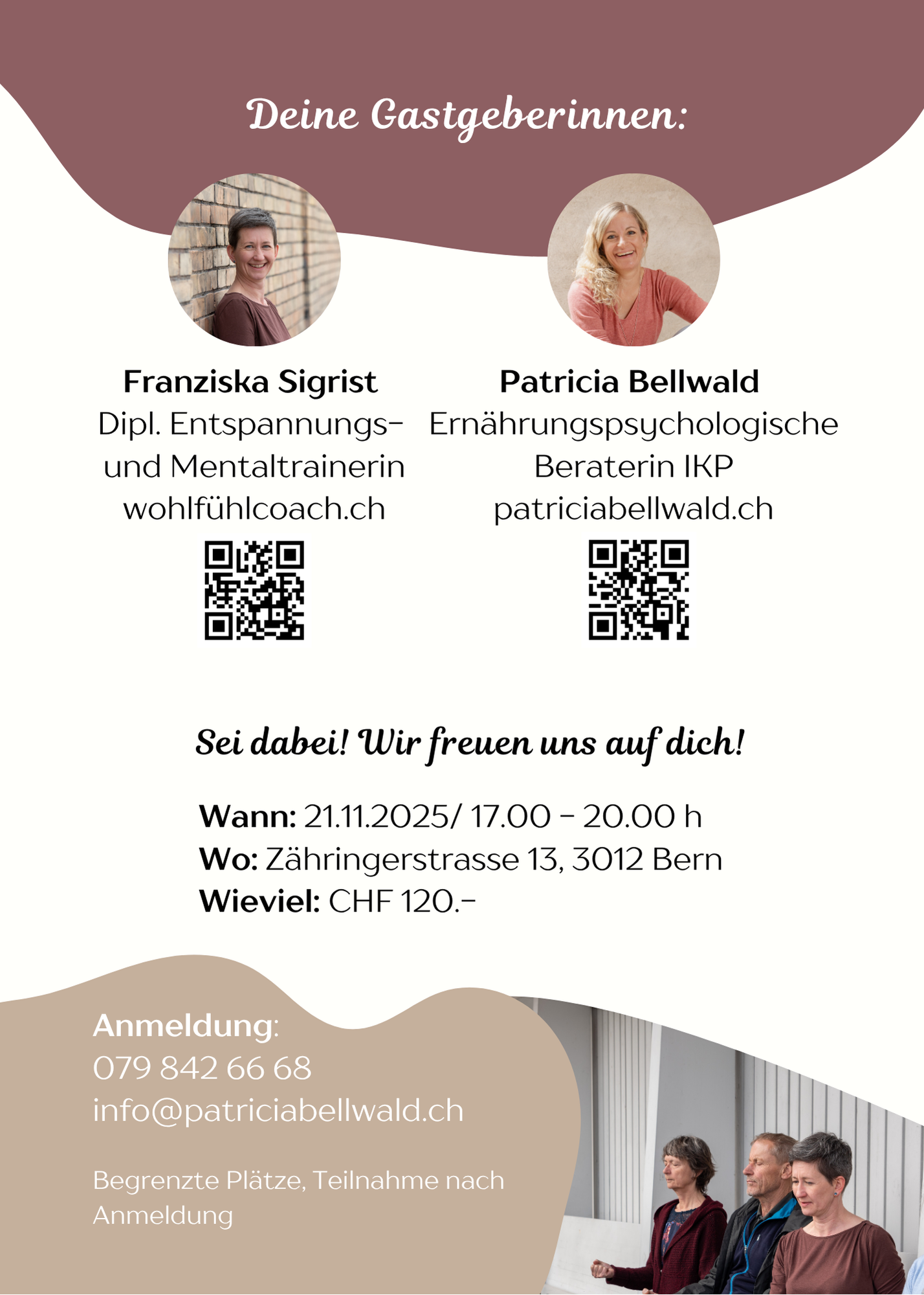 Anmeldung: info@patriciabellwald.ch